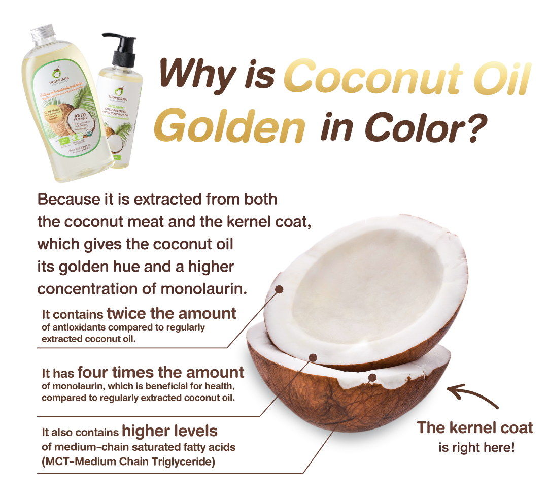 TROPICANA’s Golden Cold-Pressed Coconut Oil is not only good for health but also certified by international standards, giving consumers confidence in the cleanliness and safety of the product.